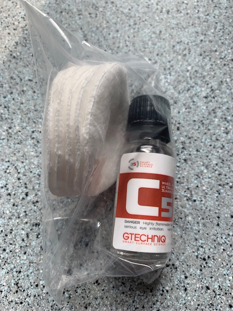 The next step was the application of Gtechniq C5 Wheel Armour. I've used the product many times, and feel for the money its fantastic value, it's also really easy to apply. The product comes in a small bottle which you drip feed onto the supplied applicator pads, and then wipe the product all over the alloy wheel. It's super easy to work, and you can achieve a consistent thin coat without any trouble. As a product, it doesn't really stop brake dust accumulations, but the brake dust just washes away with a gentle rinse with plain water. it's brilliant.